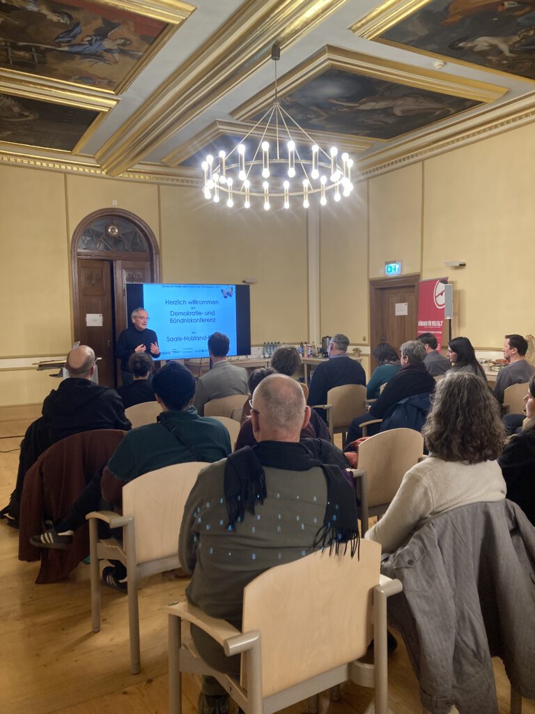 Unsere Demokratie- & Bündniskonferenz am 25. November – organisiert vom LAP und dem Projekt Demokratie_laden – brachte unterschiedliche Akteur*innen zusammen, um über Jugendbeteiligung, kommunale Demokratieförderung und partizipative Formate zu diskutieren. Mit Input-Vortrag und Workshops wurden Themen und Methoden praxisbezogen beleuchtet, Ideen und Ansätze für 2026 gesammelt.